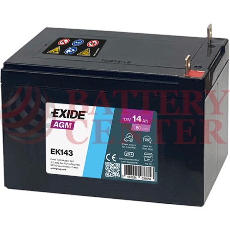 Μπαταρία Exide AGM EK143 Start Stop Auxiliary 12V Battery Capacity 20hr 14 (Ah):EN1 (Amps): 80CCA