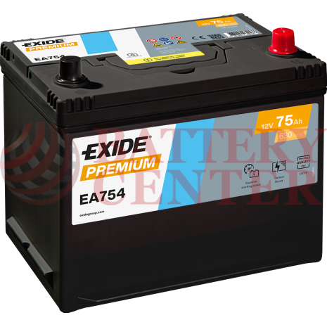 Μπαταρία Exide Premium EA754 12V Capacity 20hr 75(Ah):EN (Amps): 630EN Εκκίνησης