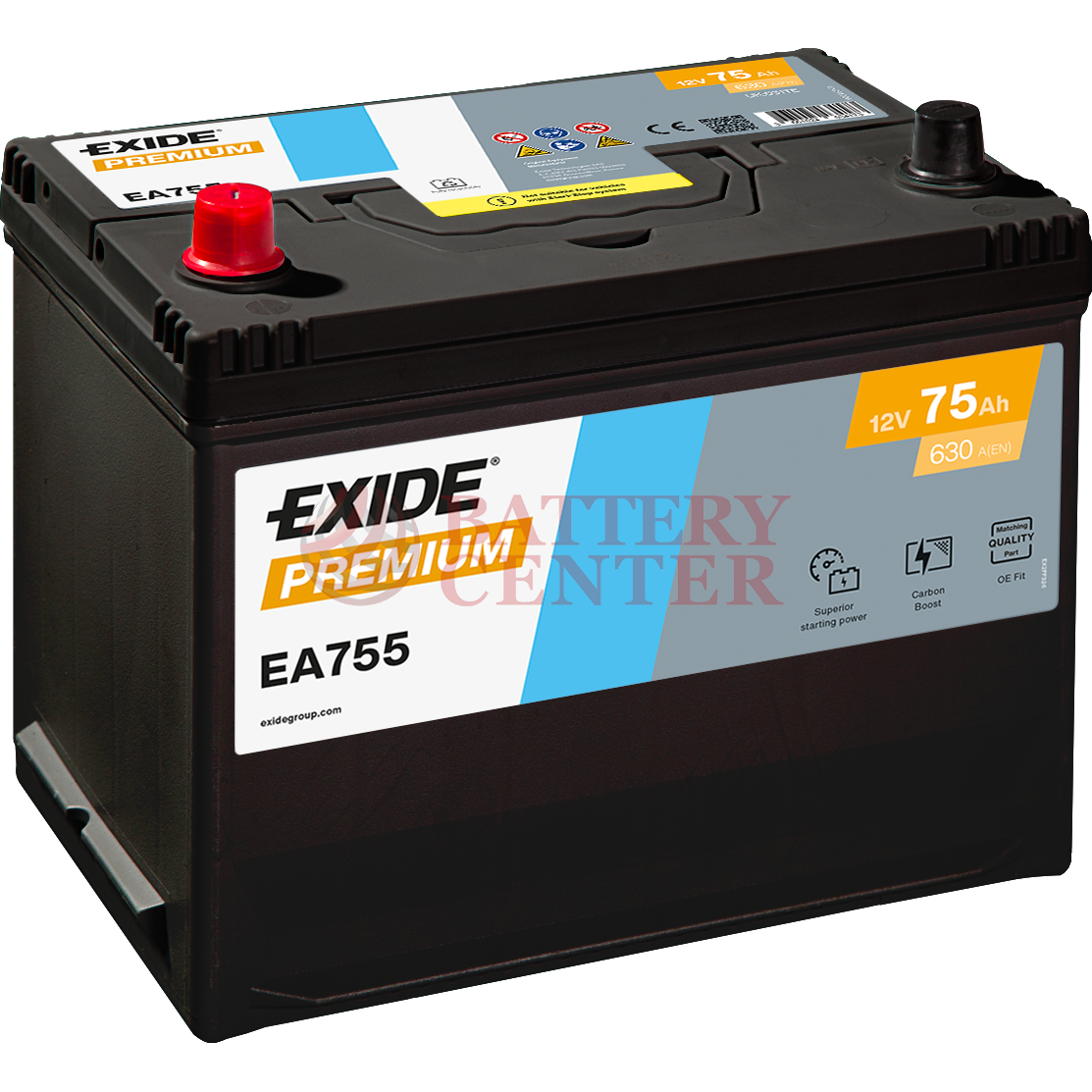 Μπαταρία Exide Premium EA755 12V Capacity 20hr 75(Ah):EN (Amps): 630EN Εκκίνησης