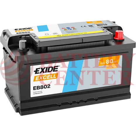 Μπαταρία Exide Excell EB802 12V Capacity 20hr 80(Ah):EN (Amps): 700EN Εκκίνησης