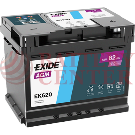 Μπαταρία Exide EK620 Start Stop AGM 12V Capacity 20hr 62(Ah):EN (Amps): 680EN Εκκίνησης