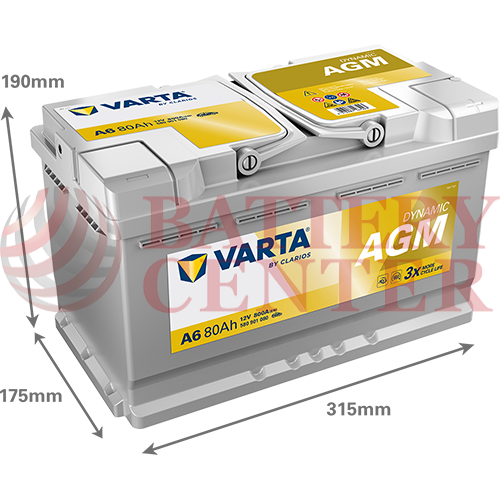 Μπαταρία Varta Dynamic AGM A6 Start Stop 12V Capacity 20hr 80 (Ah):EN (Amps): 800EN Εκκίνησης.