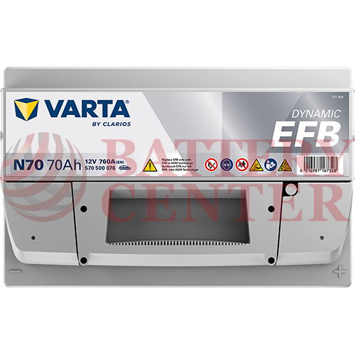 Μπαταρία Varta Dynamic EFB N70 Start Stop 12V Capacity 20hr 70(Ah):EN (Amps): 760EN Εκκίνησης