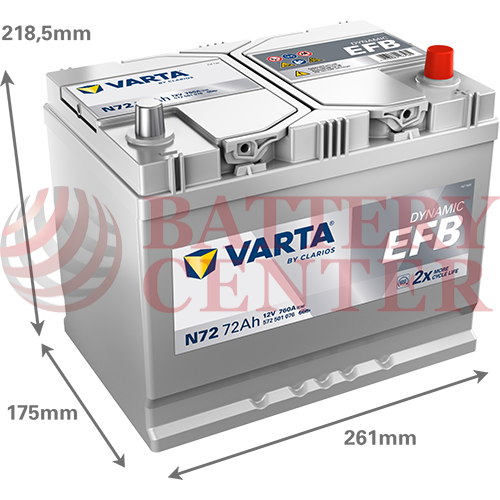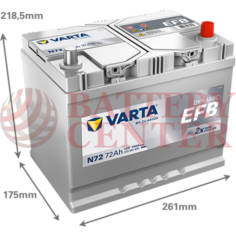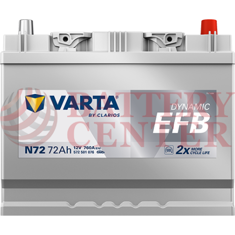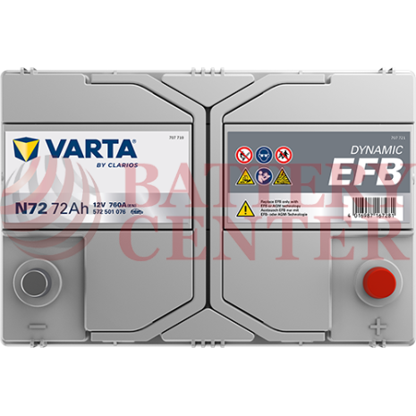 Μπαταρία Varta Dynamic EFB N72 Start Stop 12V Capacity 20hr 72 (Ah):EN (Amps): 760EN Εκκίνησης