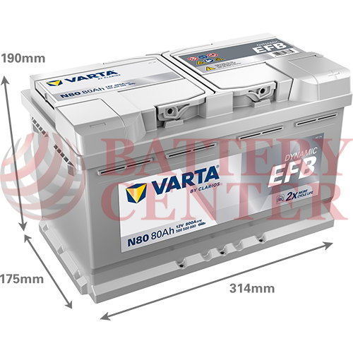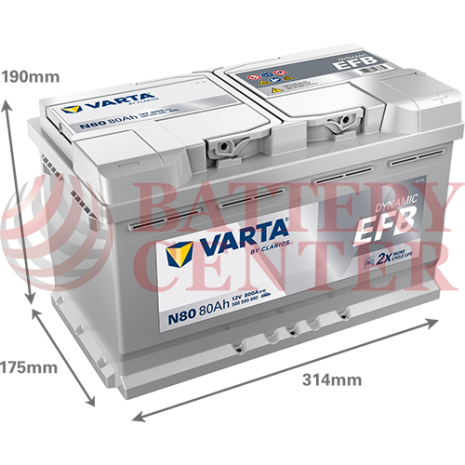 Μπαταρία Varta Dynamic EFB N80 Start Stop 12V Capacity 20hr 80(Ah):EN (Amps): 800EN A Εκκίνησης